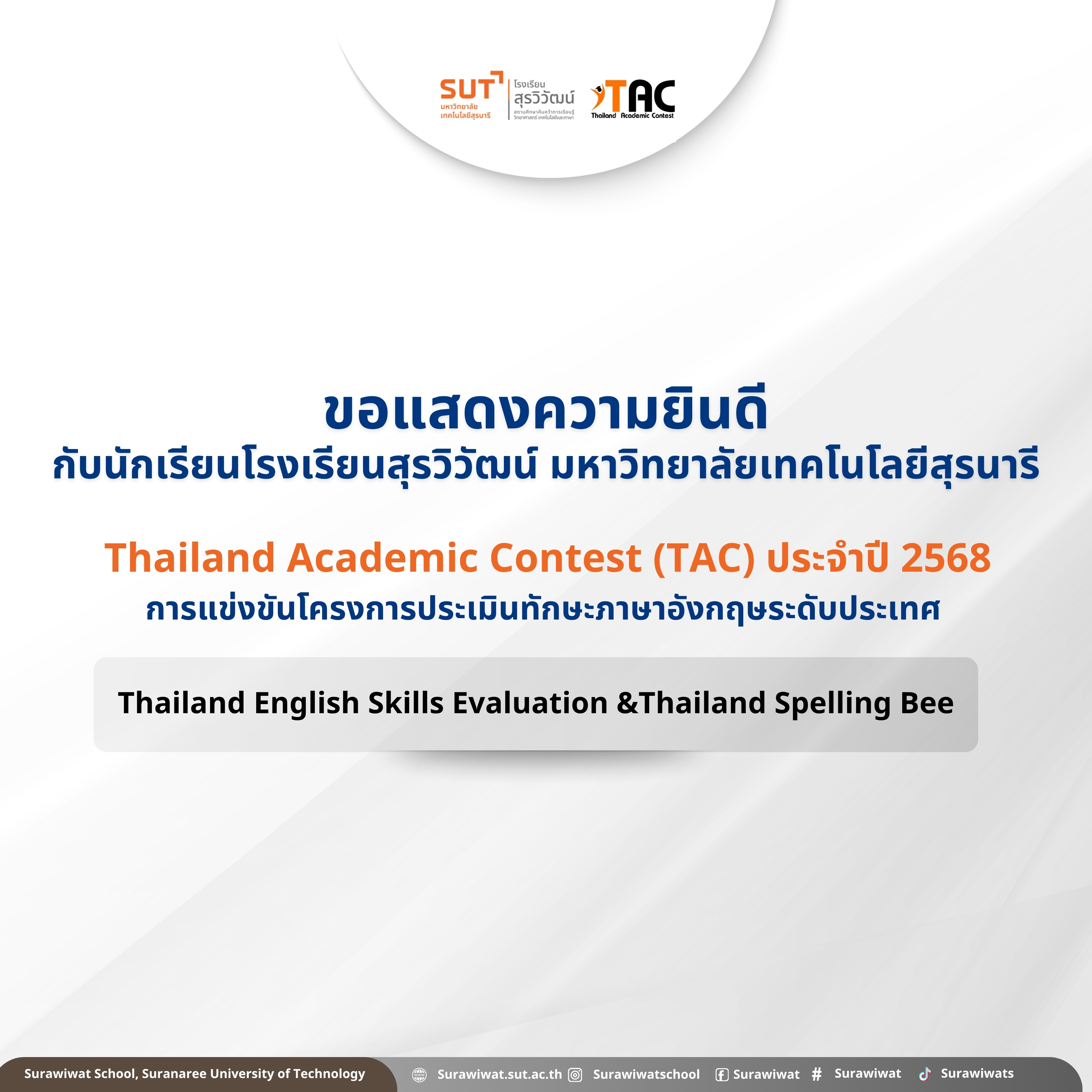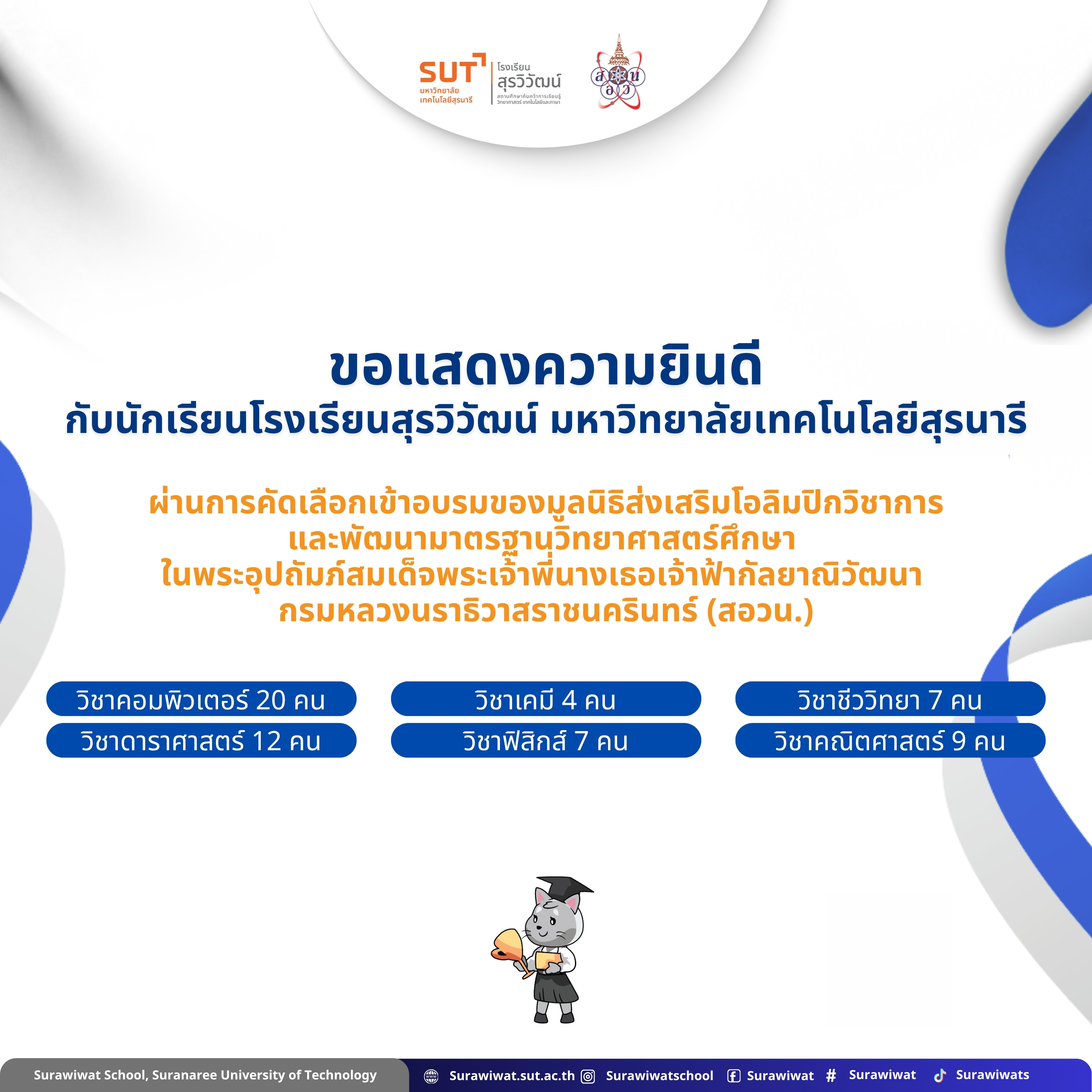 ในโรงเรียนสุรวิวัฒน์ มหาวิทยาลัยเทคโนโลยีสุรนารี ประจำปีการศึกษา 2568 รอบมาตรฐานวิชาการ
