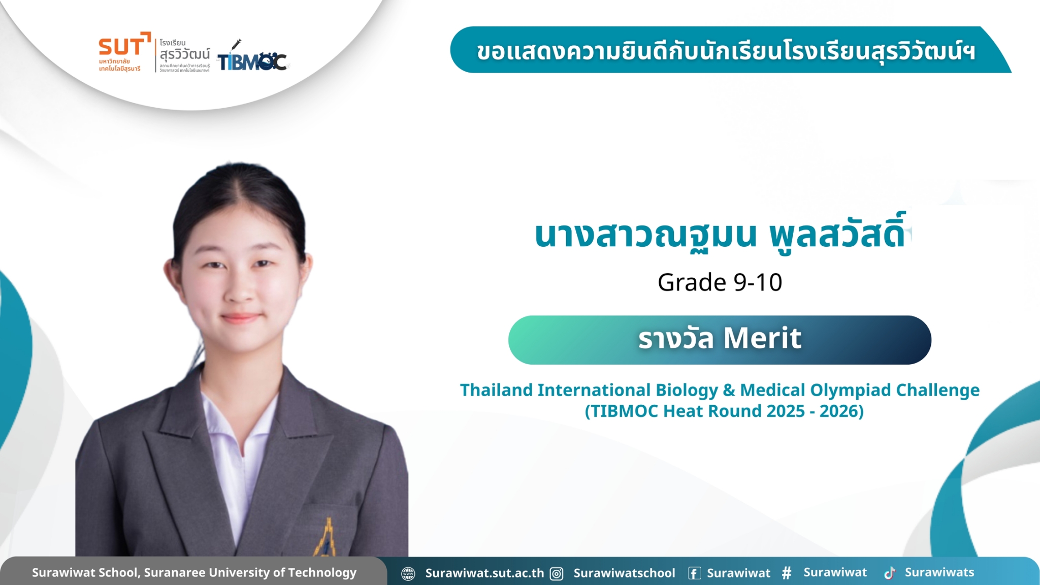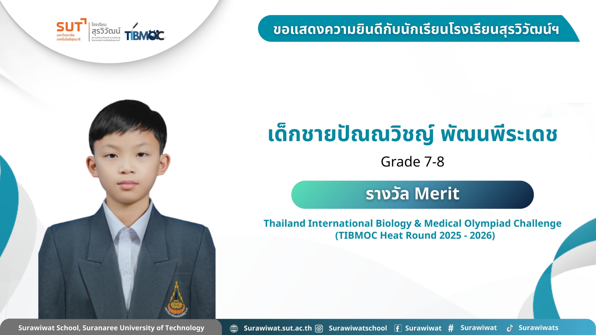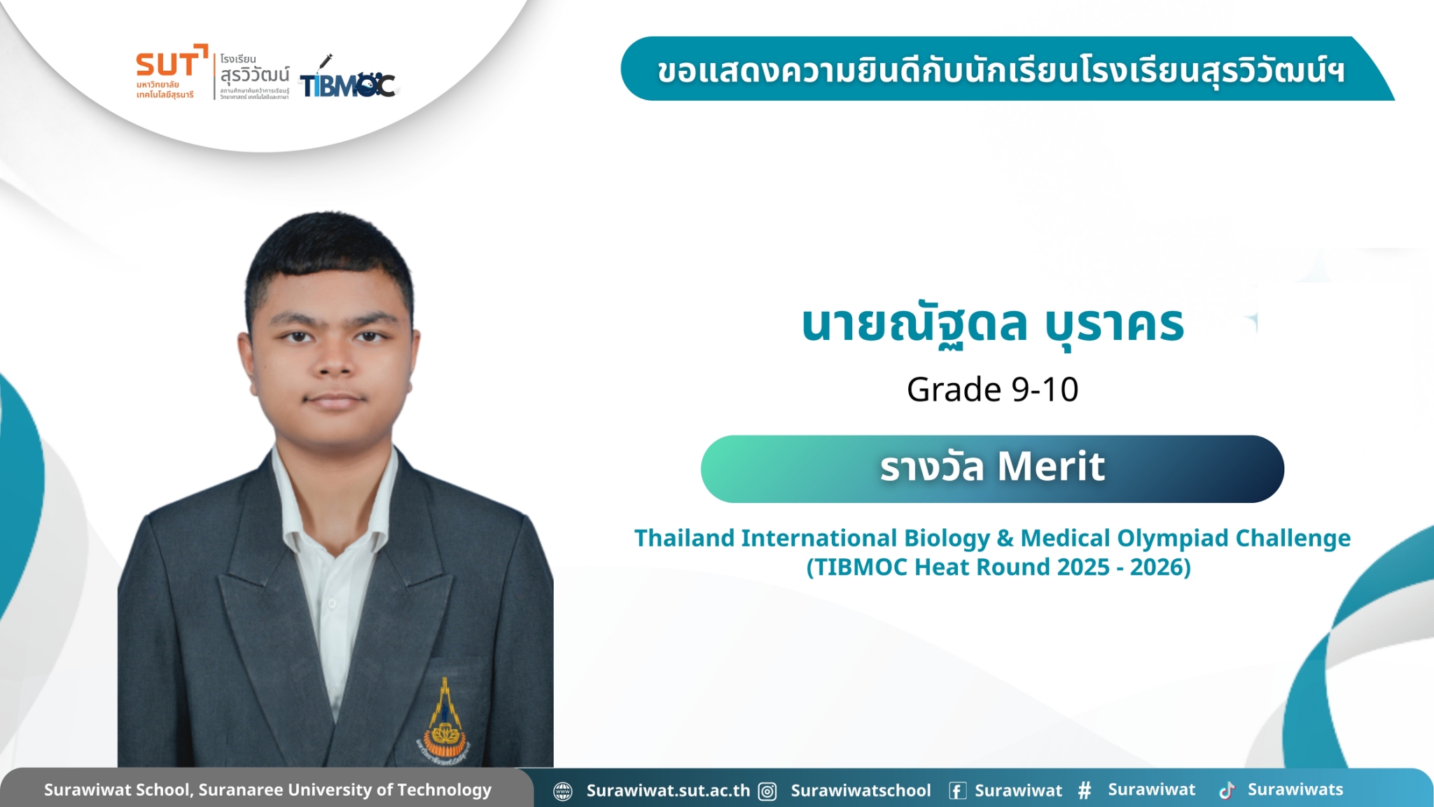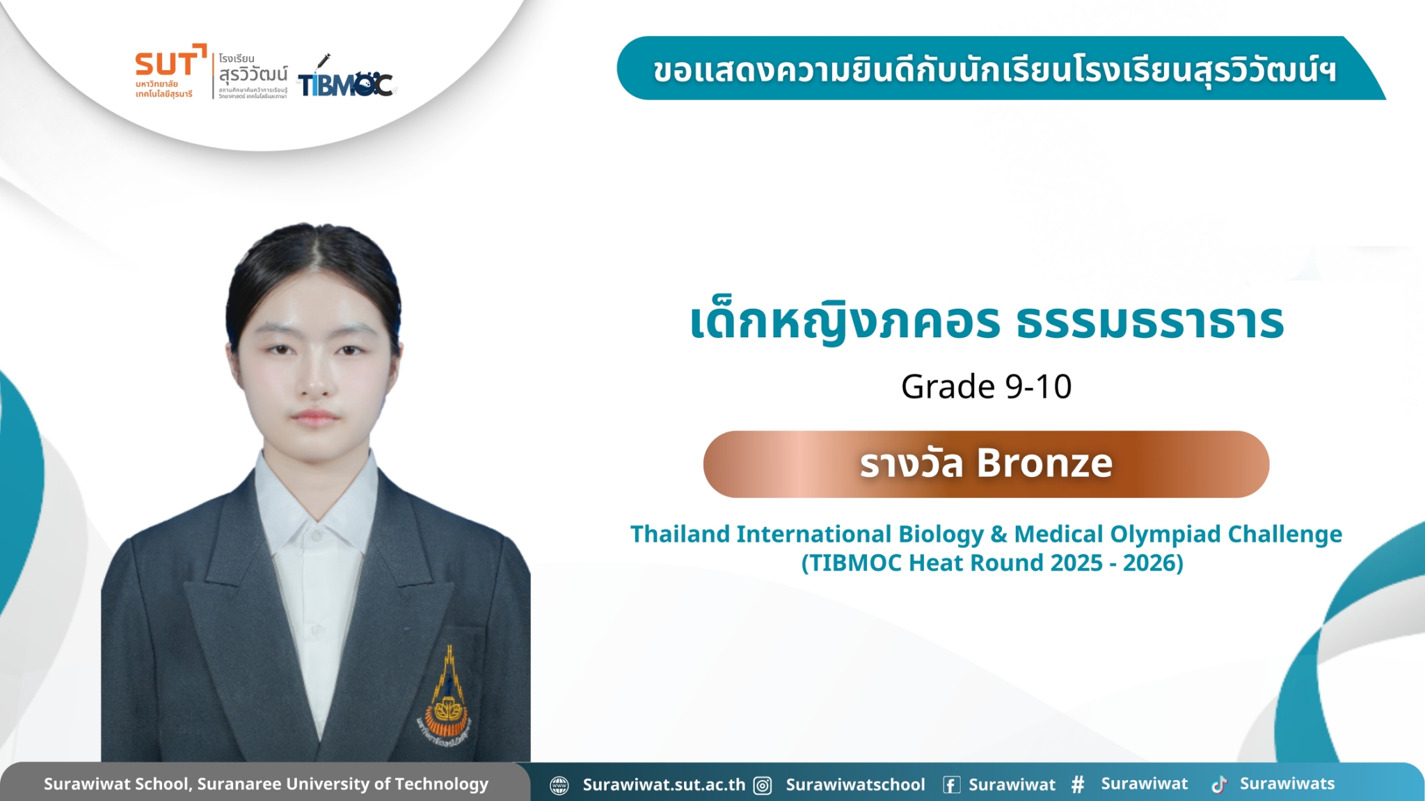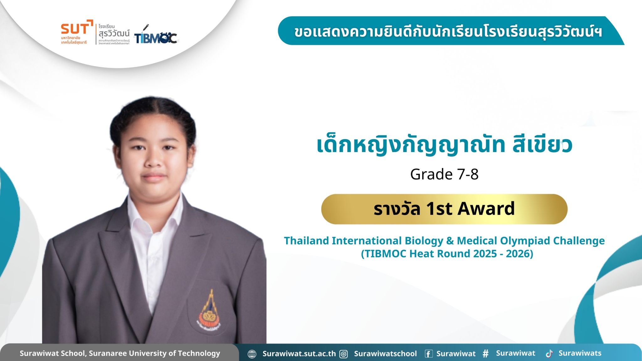 🥇 ขอแสดงความยินดีกับนักเรียนโรงเรียนสุรวิวัฒน์ฯ 🎉 ในการแข่งขัน Thailand International Biology & Medical Olympiad Challenge (TIBMOC Heat Round 2025 - 2026) วันที่ 24 มกราคม 2569